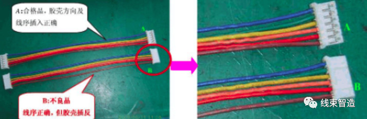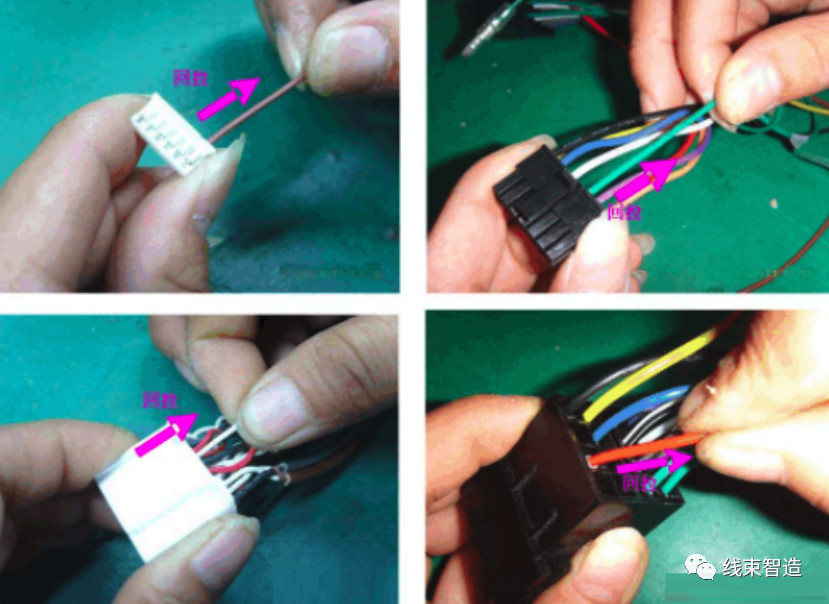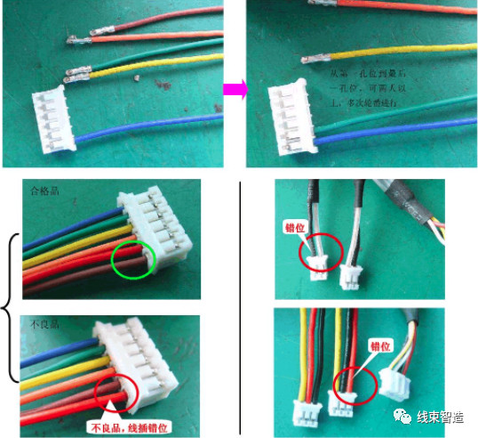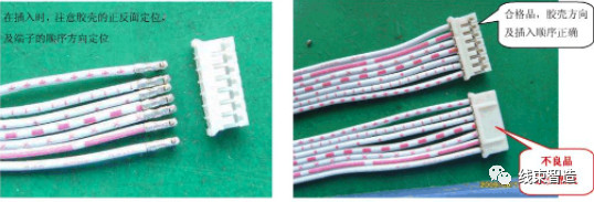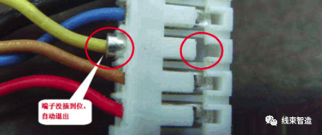 3.在装配时,每插入一根端子线进入胶壳后,必须立即对其回拉一下,看是否端子插到位。 如果端子弹片勾住了胶壳的卡点,则不会退出来,否则,在电测和使用时,没插到位的端子倒退出来,影响通电等使用性能。