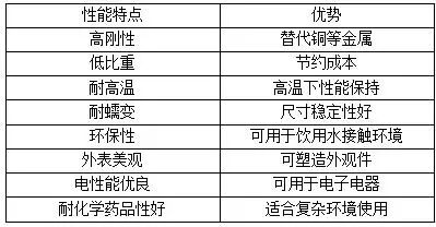 ①硬度和冲击强度高、耐蒸气、耐水解、耐辐射、无毒、耐热、耐寒性、耐老化性好、尺寸稳定性好,并具有自熄性。