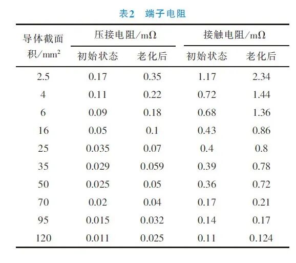 2)端子电阻。评估端子压接的效果包含压接电阻测试评估。表2为端子电阻。