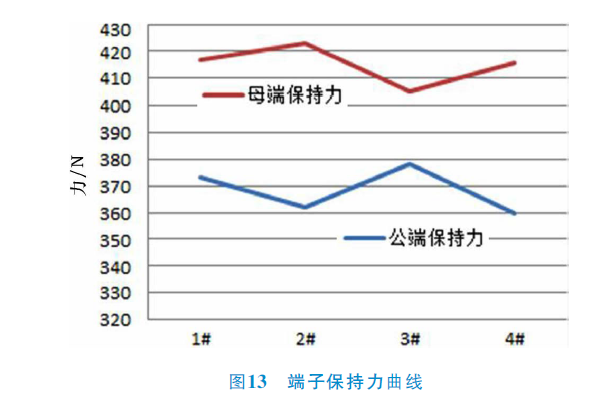 图13中可见,对于线径截面积为4mm2的产品,其端子抗拉力可满足表1中的最小抗拉强度要求,且公端与母端的产品一致性在可控范围内。