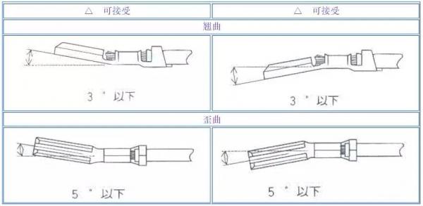 2、压着机、压着模具调整不良及磨损时,端子容易发生的变形及判断标准;