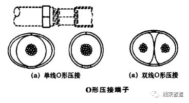 冷冲压连接后,端子绝缘压接区中不允许出现端子刺伤导线绝缘层的情况,压接后绝缘压接区的端子封闭口对正接触或分开,单线O形压接如下图a所示,双线O形压接如下图b所示。