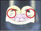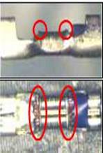 | 1)非对称不予许的原因 →非对称会发生过压接和为压接在两侧同时发生 →端子外型不良 →耐久性低下 |