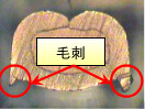 无毛刺(偏毛刺) | 1)压接时,根据毛刺的程度从外观上能够判定未压接及压接的程度,但从外观上无法全部找出不良,只能在端子断面状态确认合格与否.