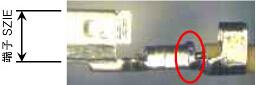 | 1)为什么不允许有空隙 →“A”部位空隙是压接部和线未完全压接造成,固定强度(拉力)不足,耐久性低下。 →“B”部位空隙是线芯,发生空隙的原因是各个线芯腐蚀造成的。个线芯的阻抗值增加 →英雌浸水及浸蚀会加速腐蚀 |