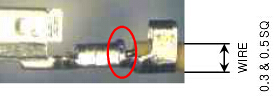 线压接部两侧,应有喇叭口 | 1)端子040系列以下前侧无喇叭口也可以