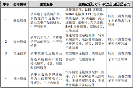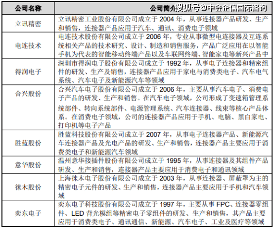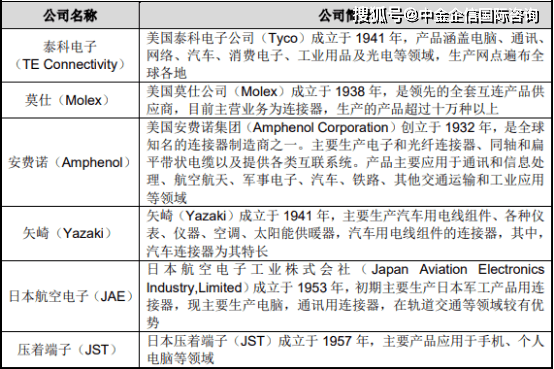 (2)国内连接器主要企业:结合公司的产品特点、产品应用领域特征,国内部分代表性的连接器企业简要信息如下: