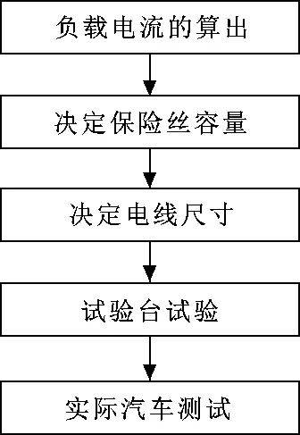 在线束设计过程中一个重要的工作就是电线和保险丝的匹配,保险丝设置的主要目的就是保护导线在短路情况下不会出现熔化起火的故障。一般电线和保险丝的匹配过程和流程如图4 所示。