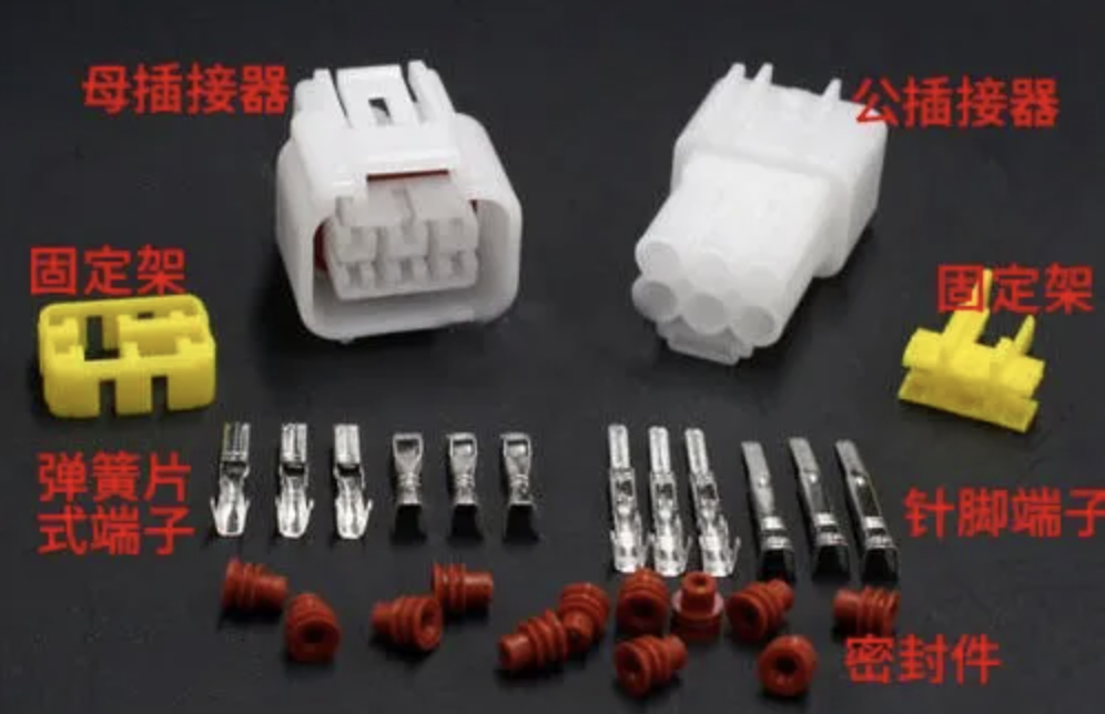 一般而言,线束连接器主要由端子、壳体、固定架、密封部分、锁止部分等组成。