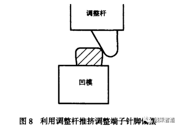 通过高度可调的调整杆的斜面推挤端子针脚的侧面,将端子针脚调直。调整的程度由调整杆的高度确定,如图8所示。