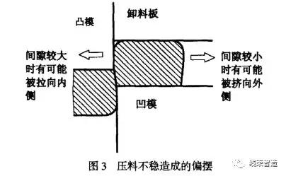 冲裁端子针脚两侧的凸、凹模间隙不相等或单侧刃口磨损时,由于冲裁力不平衡、回弹量不同或者冲裁之后两侧边缘的应力状况不同等原因,端子针脚容易在冲裁之后出现偏摆。
