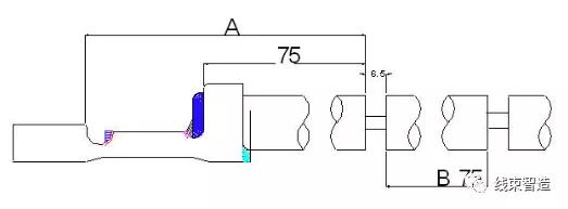 (2)在导线距离端子铆接75mm处(如下图),将6.5mm长的导线绝缘层剥离;