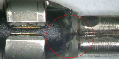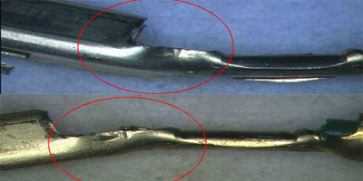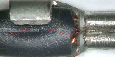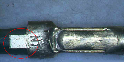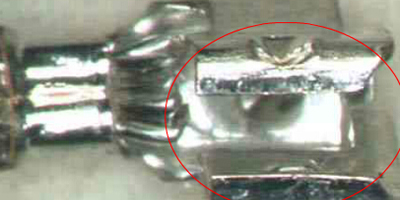 不良的原因:模具调试时,端子不到位,或者压接刀片损伤造成的。